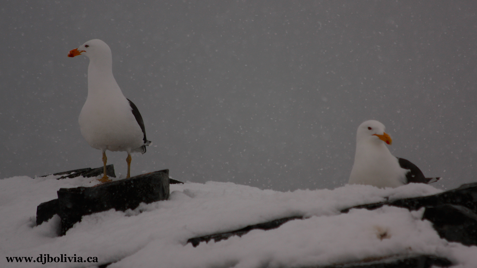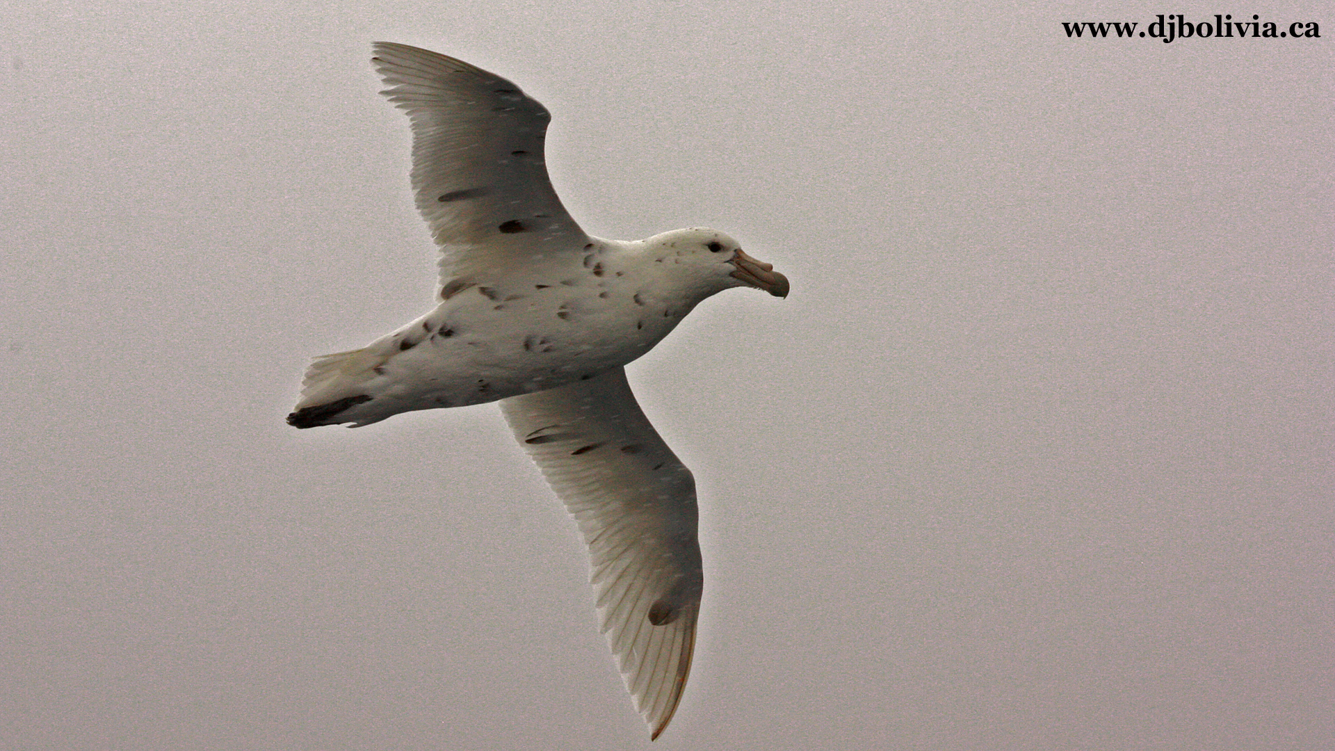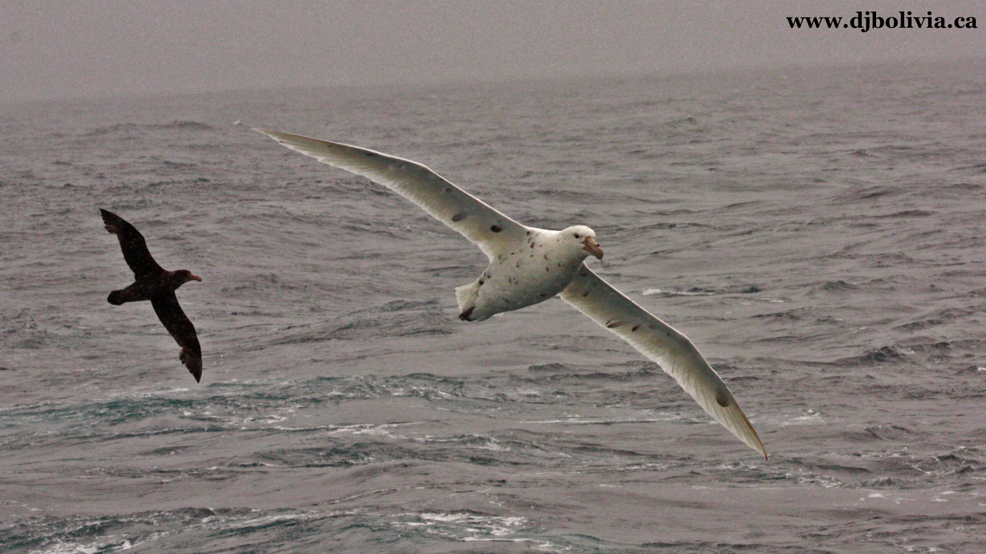 We had all kinds of birds following the ship throughout the voyage through the Drake, grabbing fish stirred up in the ship's wake. I can't even remember all the types, although I was always interested in bird species when I was growing up. Over the course of the trip, we saw five species of albatross, one type of gull (or maybe two), and a dozen types of petrels and shearwaters. And of course, penguins once we got to Antarctica. It was really hard getting clear shots of the birds, between the constant snow and spray, and the fact that they floated around so much. But I finally got a few good ones. I wish it was possible to show the scale of these ... wikipedia says that their wingspan is ten or eleven feet. Huge.