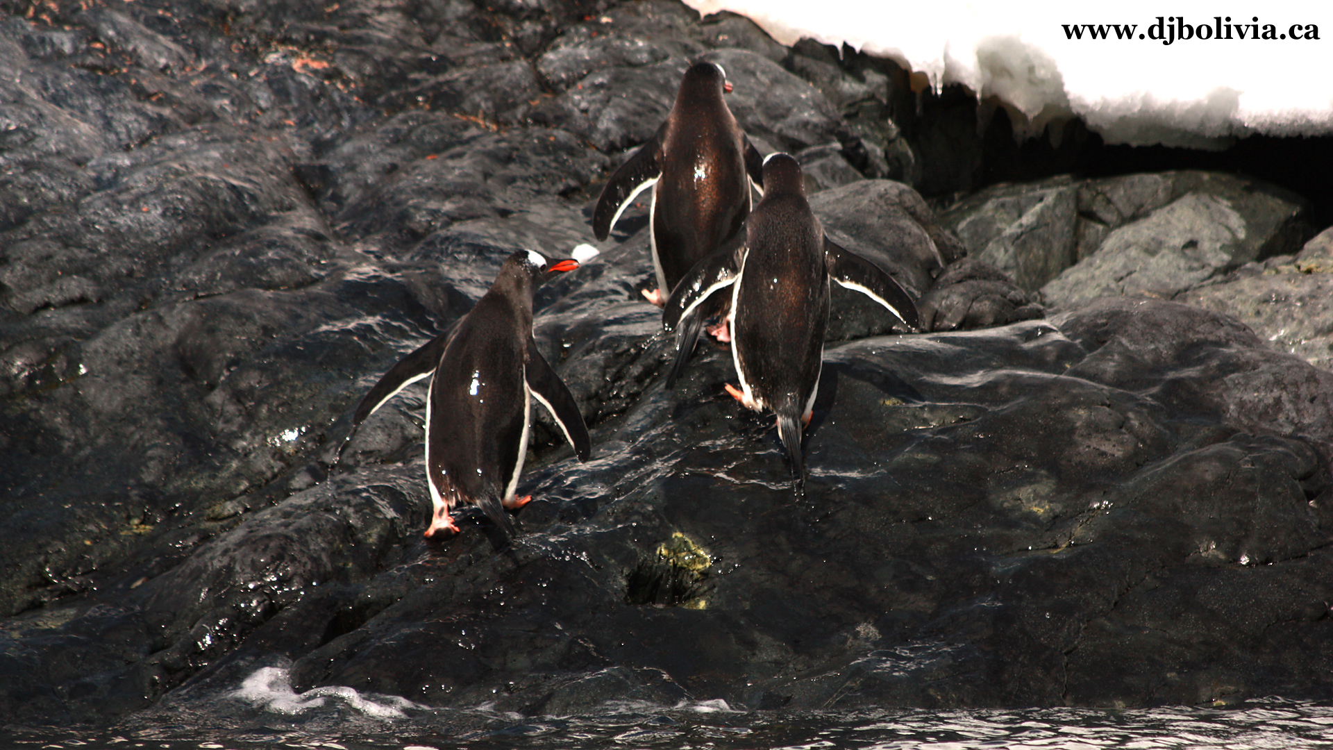 These penguins just popped out of the water. Watching them pop out of the water is a pretty funny sight.
