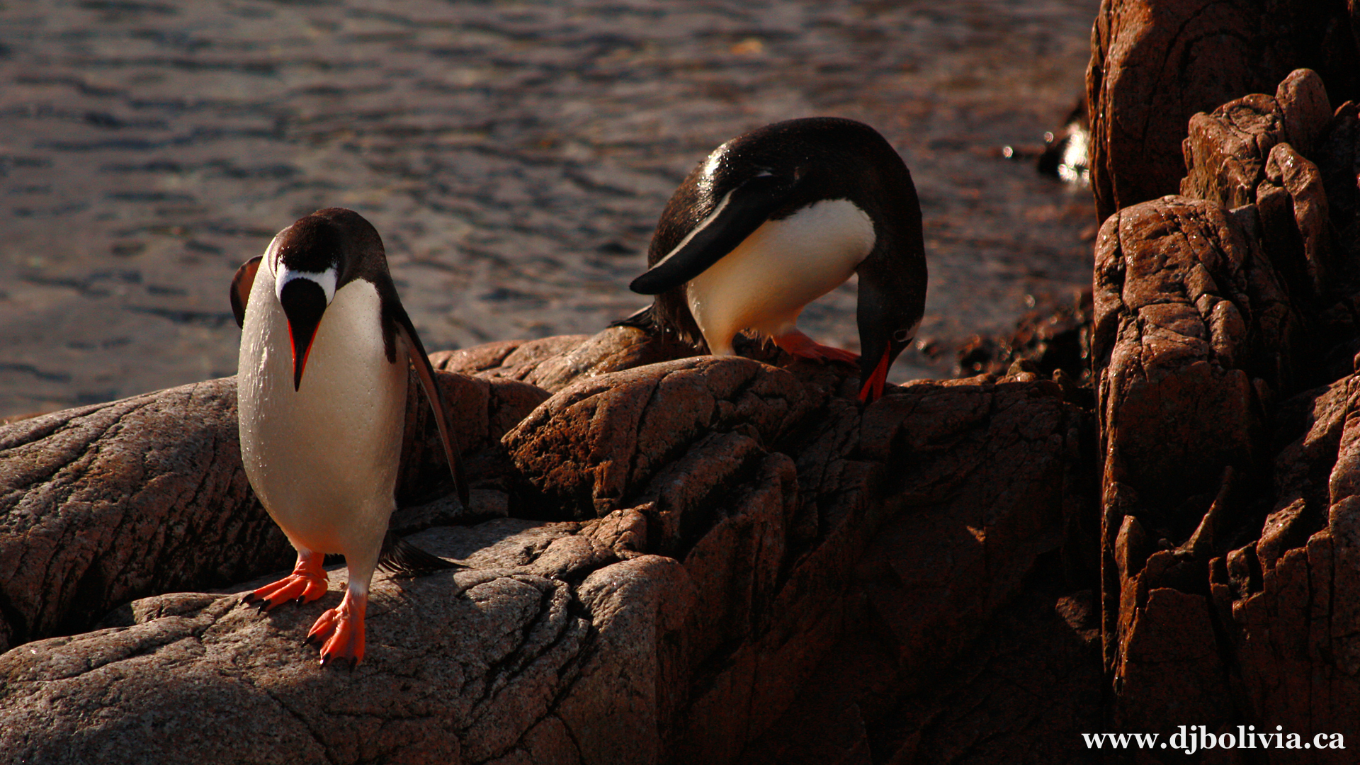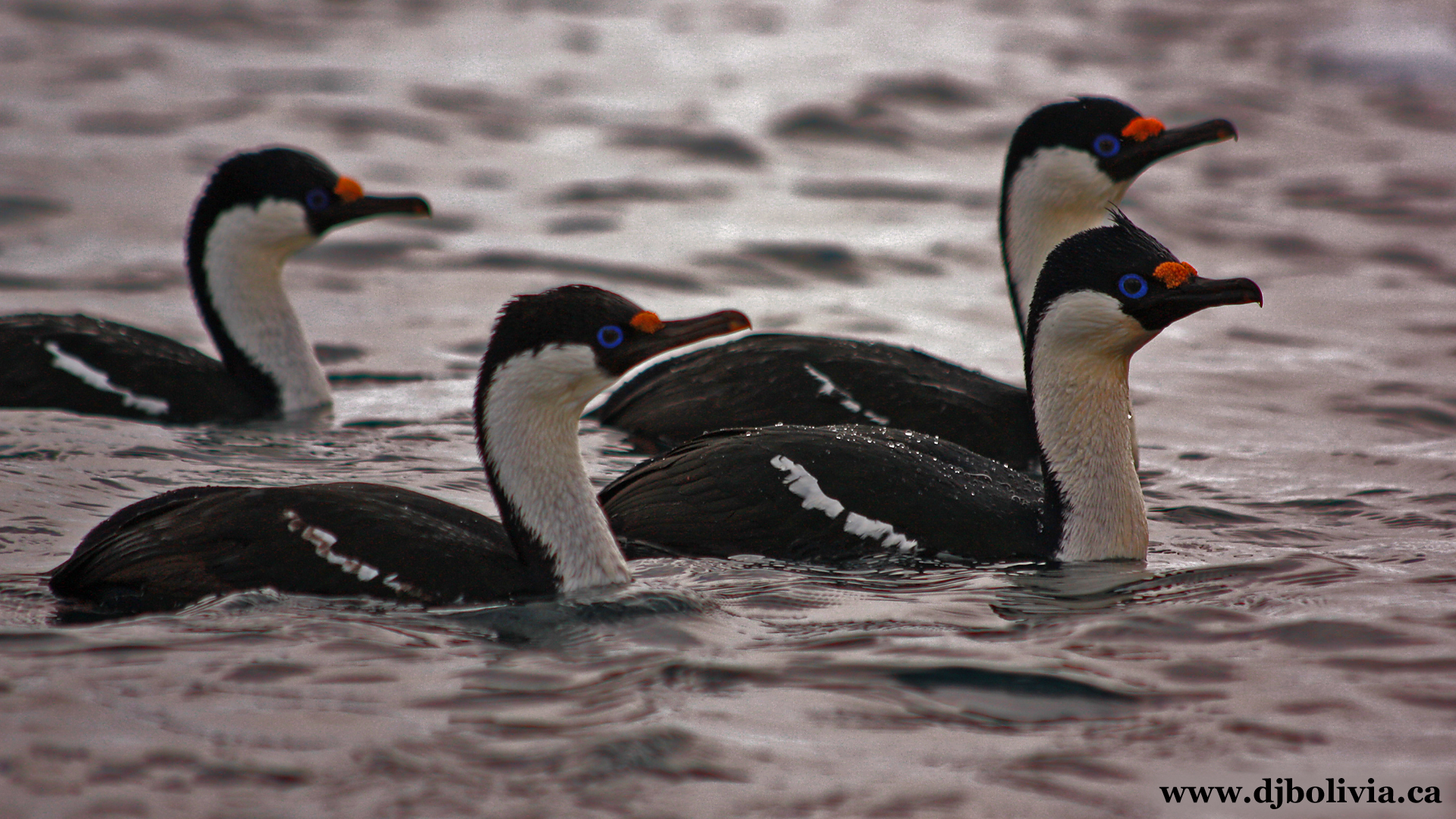 These are NOT penguins. They are Phalacrocorax bransfieldensis. They are sometimes referred to generically as Imperial Shags, but that term covers several different and somewhat controversial subspecies. This particular subspecies is known as the Antarctic Cormorant.