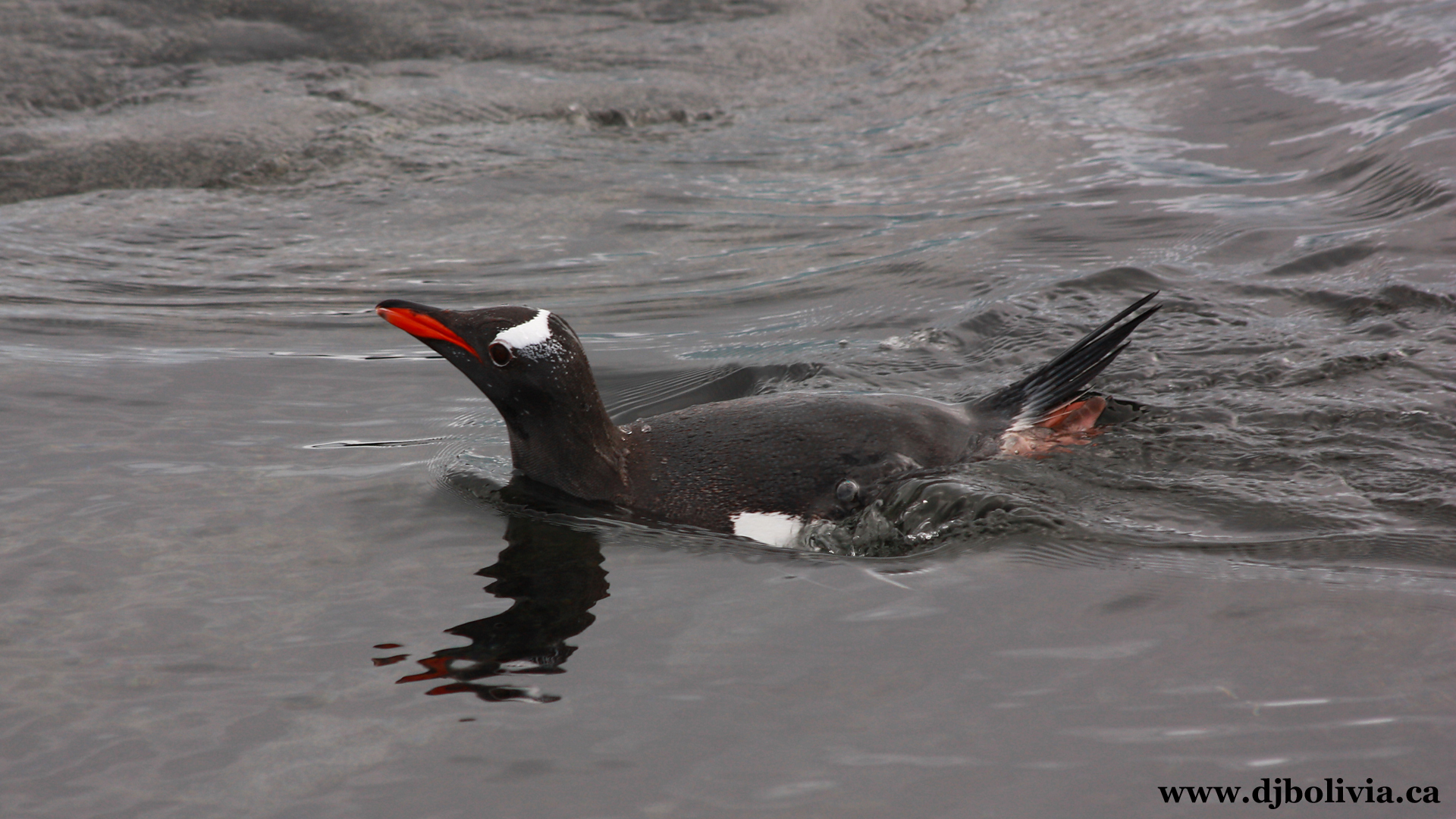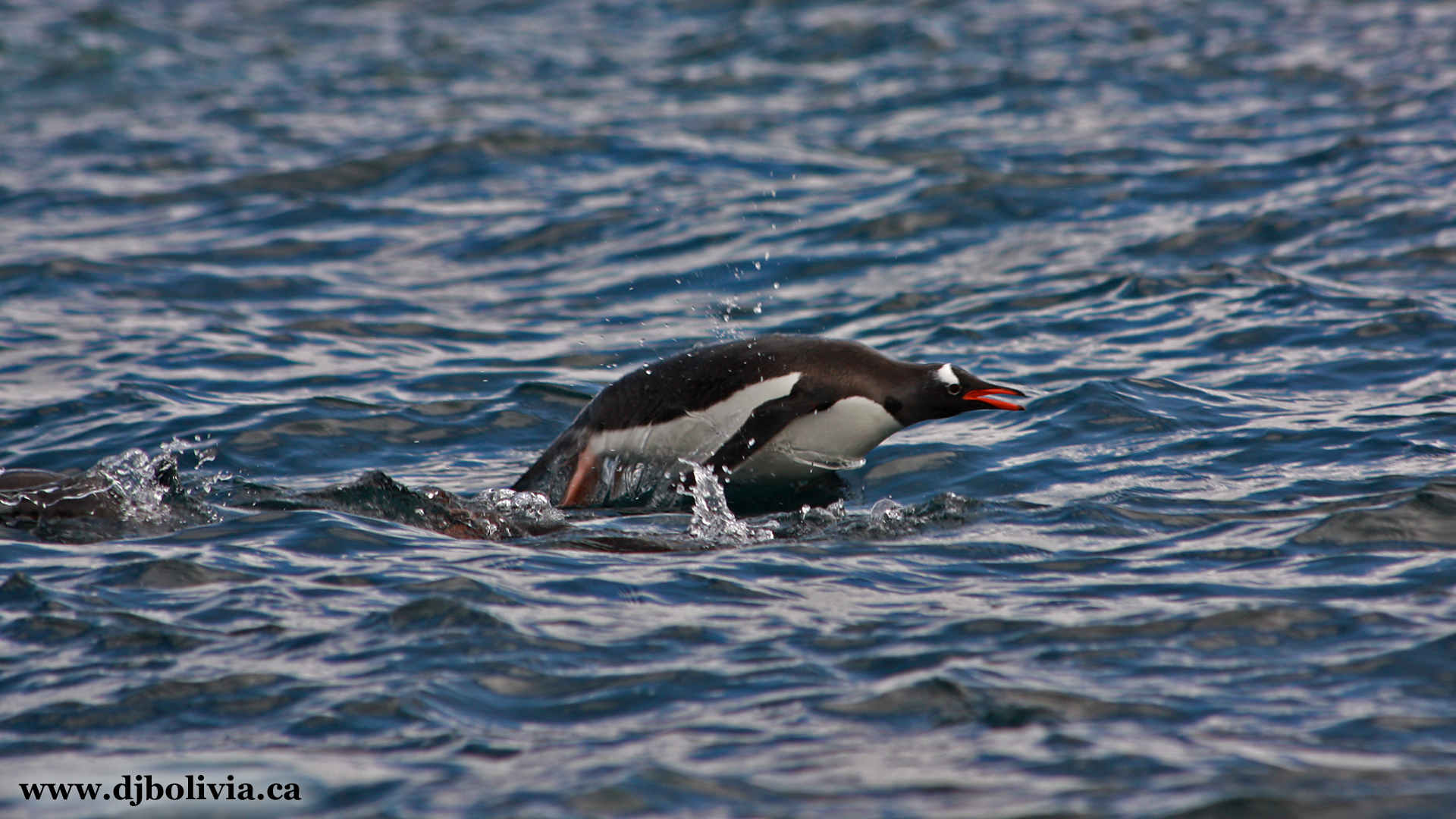 When penguins swim, they often pop up above the water to catch their breath and look around.