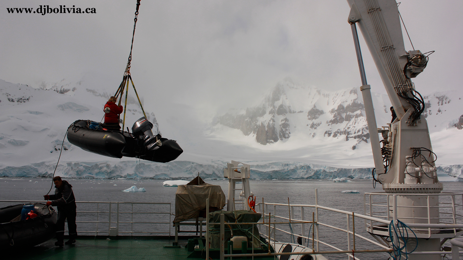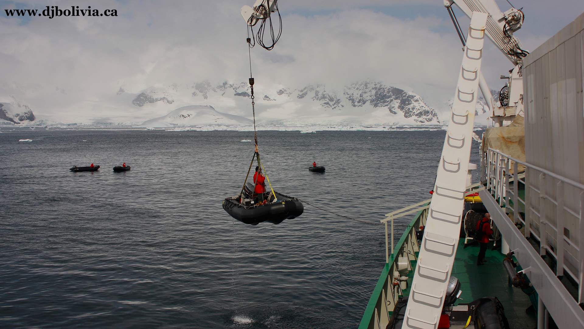 The Zodiacs (there were about thirteen on board) were loaded in and out of the water with the crane every time we went sight-seeing. Sometimes three times a day.