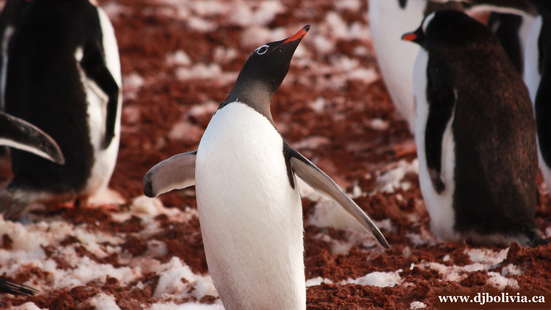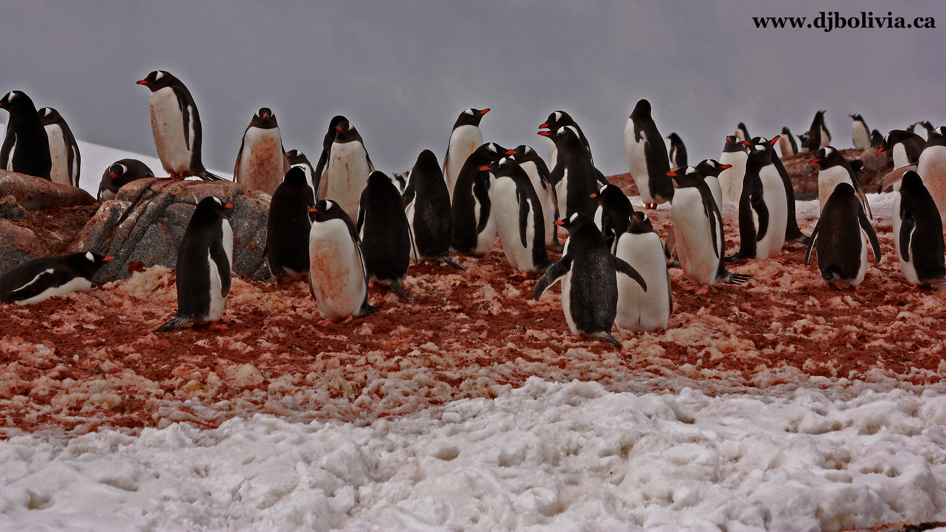 Ok, this is where the allure of the penguin might wear off a tiny bit. You've seen them in photos, and they all seem to look so white and pretty. But in truth, when you're there in person, it sort of smells like a fish market, although not a bad fish market. However, the reddish brown stuff that you'll see a bit more of shortly is penguin poop. They seem to like to stand in it.