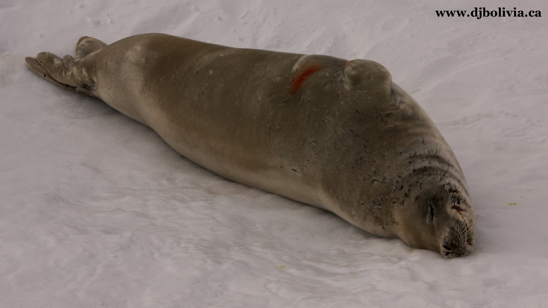 A seal. This fellow is sleeping for an hour or so. They dive for incredibly long periods, so they need to come up and sleep for a few hours afterward to let the lactic acid dissipate. Something has bit this fellow.