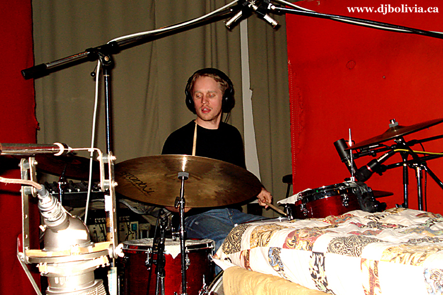 Shawn Cole, fiddling around with a music project at his place while a band (You Say Party, We Say Die!) was recording in his studio.