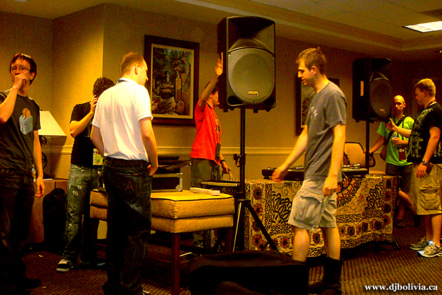 Inside the Riviera at DefCon. The DefCon 16 Hackers' Convention was held this weekend, with over nine thousand attendees. A bunch of my friends were there, and I played a show at the convention on Friday night. Here we see a group of people setting up one of the Skyboxes for a party. I won't lie - I could have been quite happy going to all of the talks at the convention all weekend. I plan to go again next year, but I'll try to do all my touristy stuff before the convention next time, so I can concentrate on the convention all weekend.