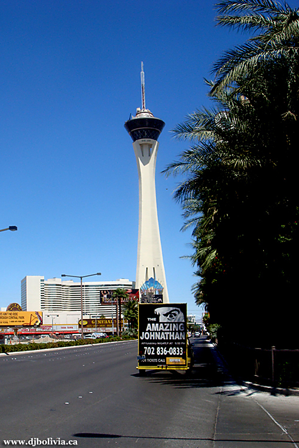 On Sunday, we decided to be complete tourists and just spend the day walking around, and looking at attractions on the Strip. Here's a photo of the Stratosphere Tower during daylight.